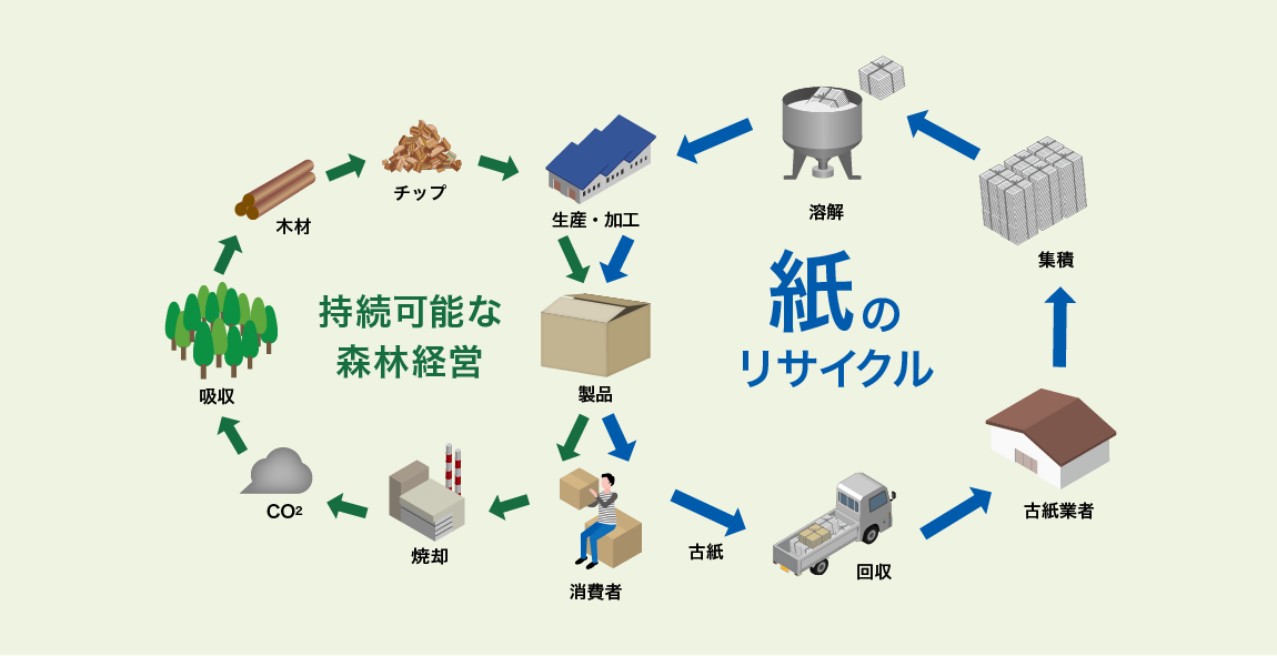 古紙を中心とした再資源化サイクルに注力し、